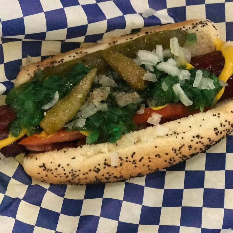 Grilled onions & sport peppers polish sausage hot dog only $8.69
